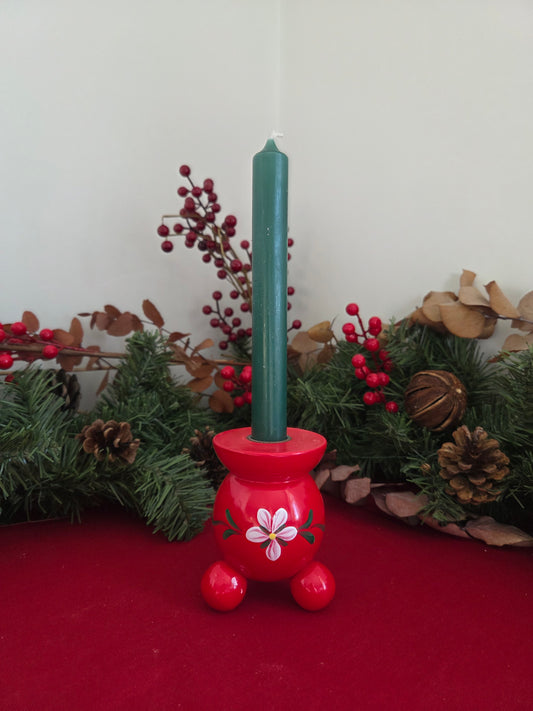 Vintage Red Wooden Candle Holder