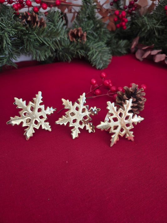 Set of Three Brass Snowflake Napkin Rings