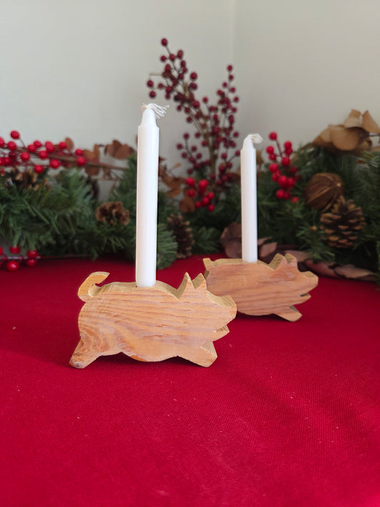 Pair of Hand Crafted Mini Pig Candlesticks