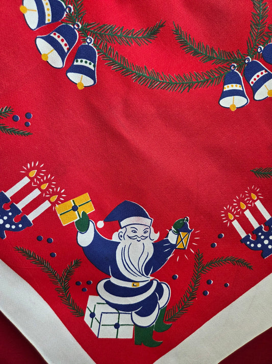 Vintage Swedish Christmas Tablecloth - Candles, Tomtes and Baubles