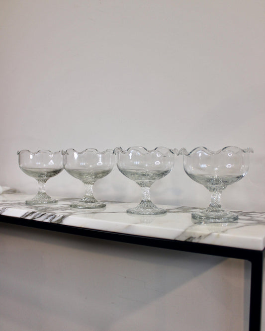 Set of 4 Vintage Dessert Bowls - Frill Edge Glass Stemmed Sundae Bowls - Scallop Detail