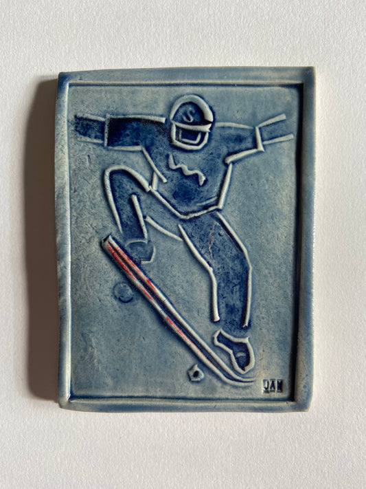 Jayne is a ceramic artist from Yorkshire, who is now living in Margate. She works in stoneware and porcelain. Her ideas are often generated by her interests, passions and obsessions. Jayne's tiles are uniquely made using a clay printing process using linocuts and then hand painted with oxides and underglazes, then glazed using a once-fired technique.