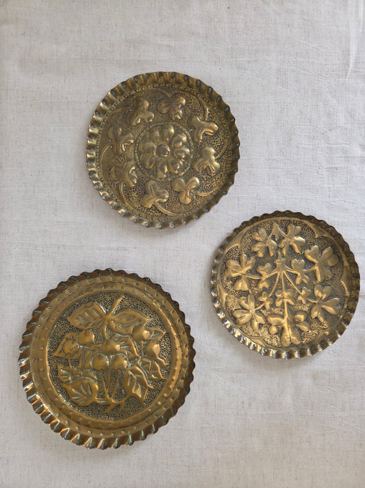 Vintage Brass Tray or Wall Plate - Cherry Motif