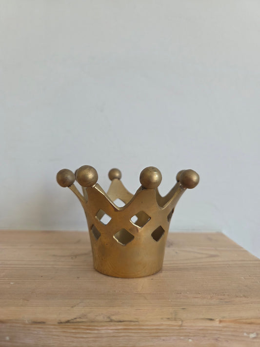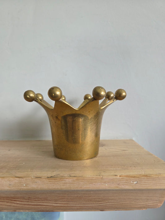 Pair of Vintage Brass Crown Candle Holders or Stem Vases