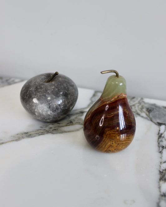 Stone Fruit Ornaments - Onyx Pear and Marble Apple