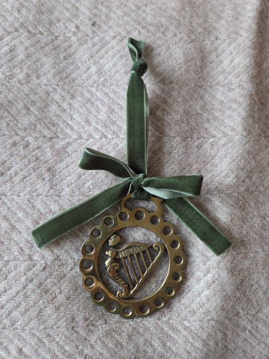 Brass Harp Decoration with Green Ribbon