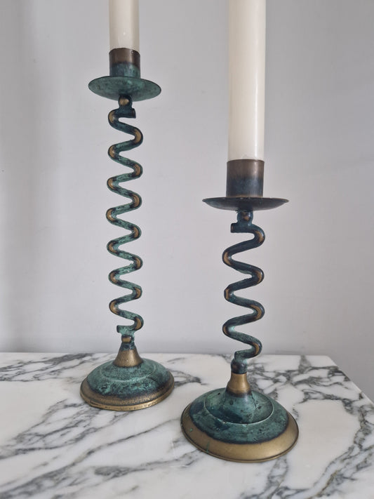 Pair of Verdigris Wiggle Candlesticks