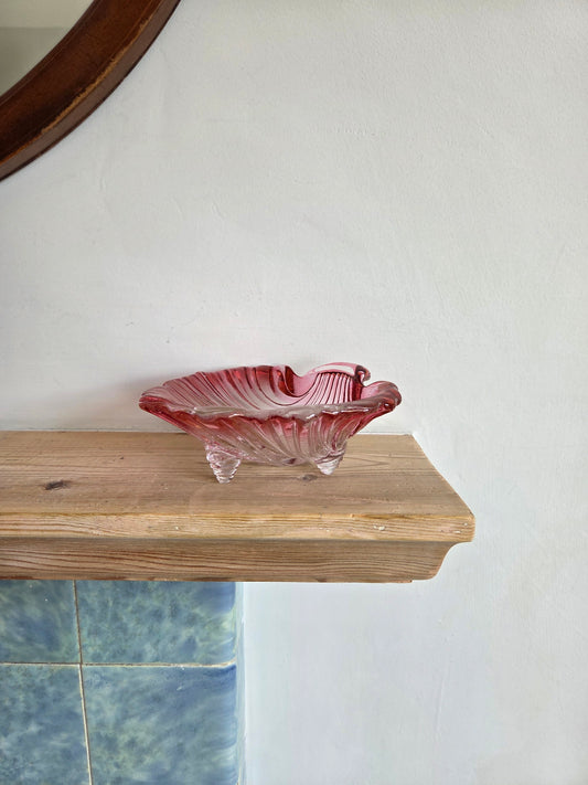 Red pink glass shell dish