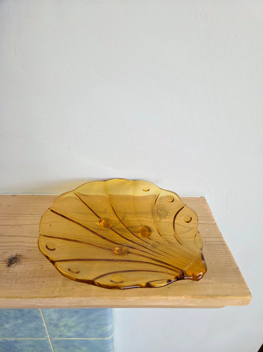 Vintage Amber Shell Dish
