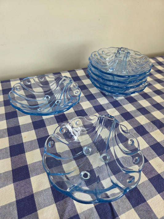 Set of Blue Glass Shell Dishes