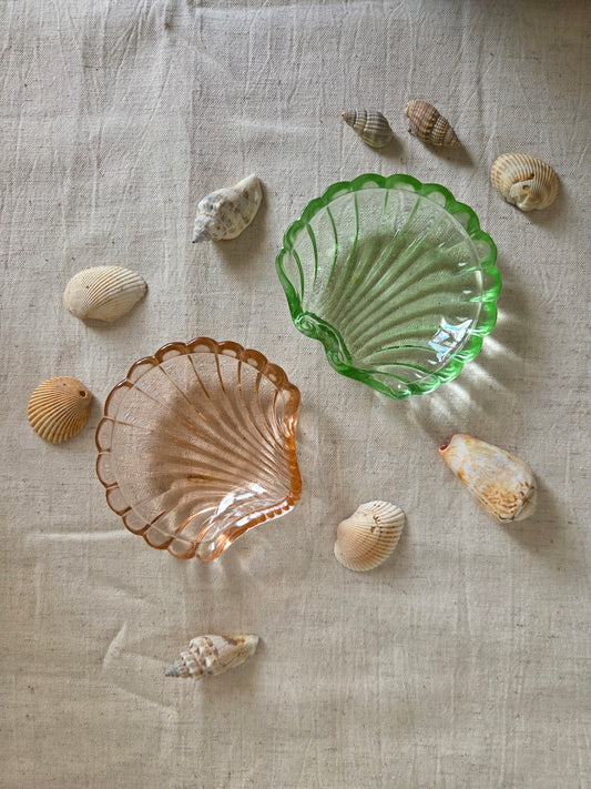 Vintage Glass Shell Trinket Bowls - Pink and Green