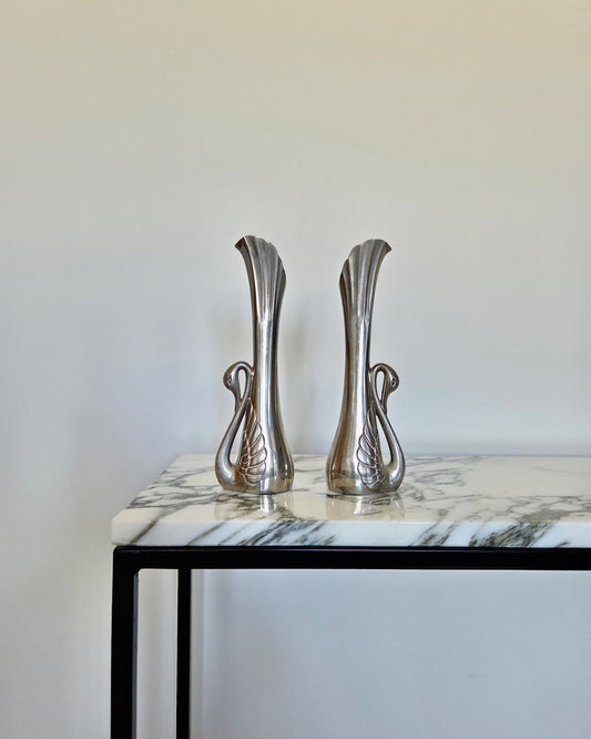 A Pair of Vintage Art Deco Style Swan Bud Vases