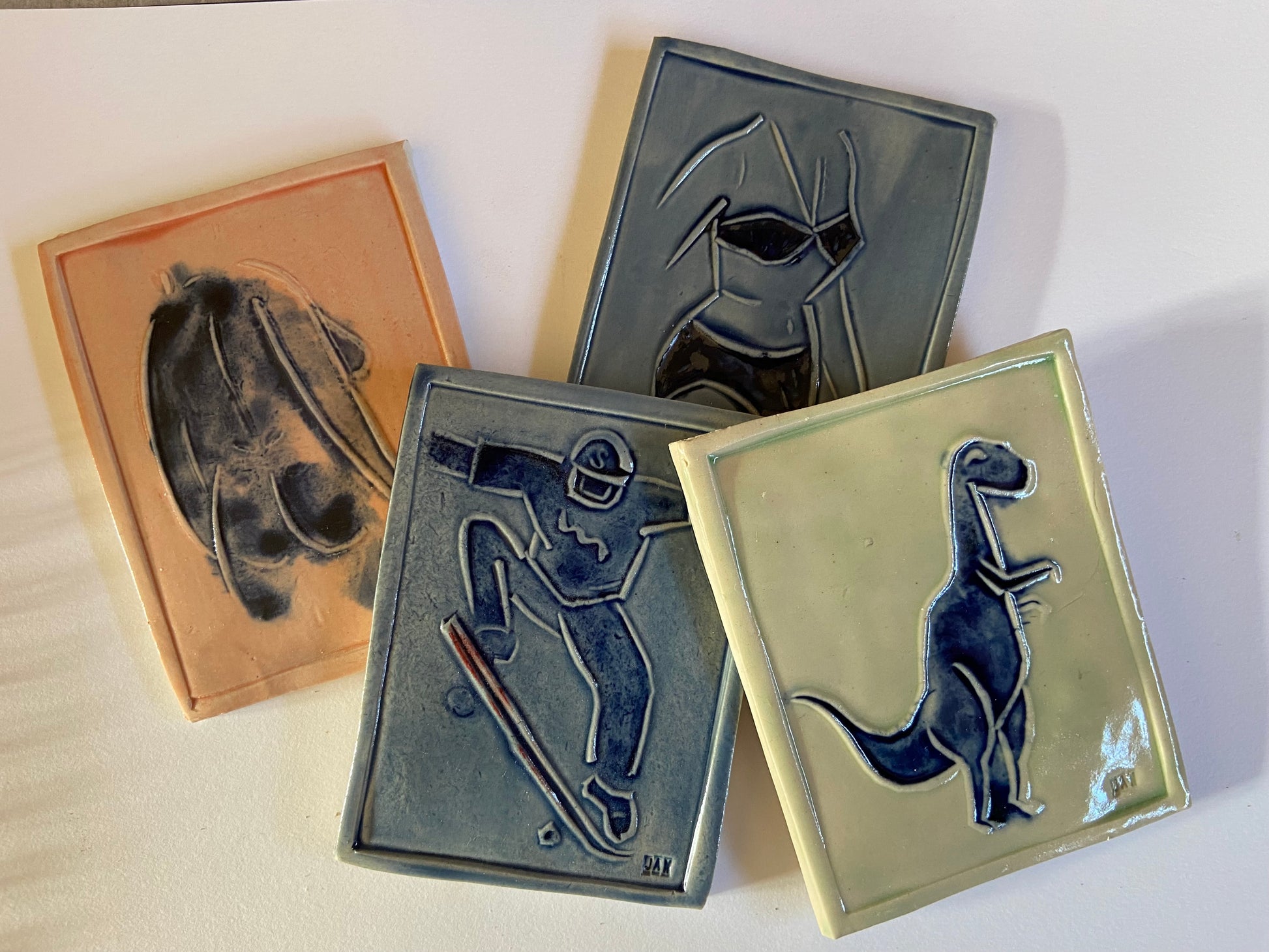 Jayne is a ceramic artist from Yorkshire, who is now living in Margate. She works in stoneware and porcelain. Her ideas are often generated by her interests, passions and obsessions. Jayne's tiles are uniquely made using a clay printing process using linocuts and then hand painted with oxides and underglazes, then glazed using a once-fired technique.