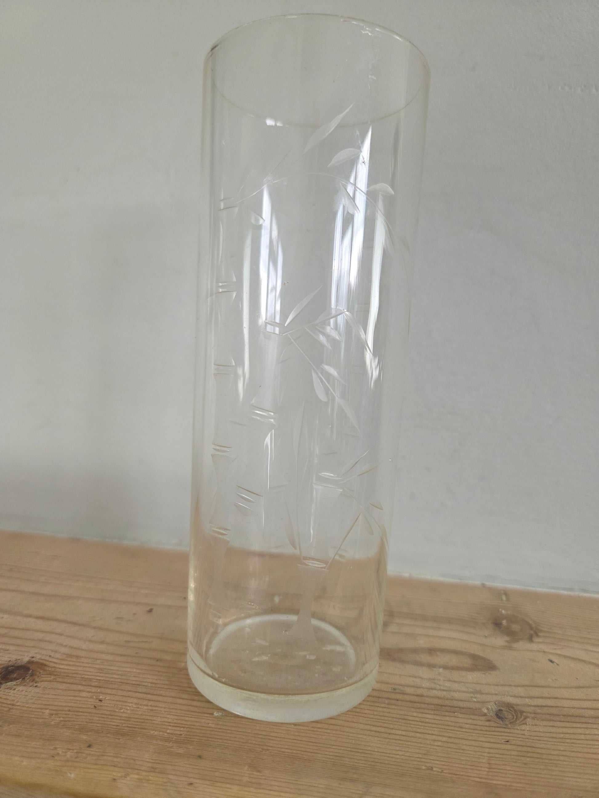This little bamboo glass vase is perfect to hold flowers on a bedside table. I think it originally would have been used as a glass but I prefer it's use for holding blooms.