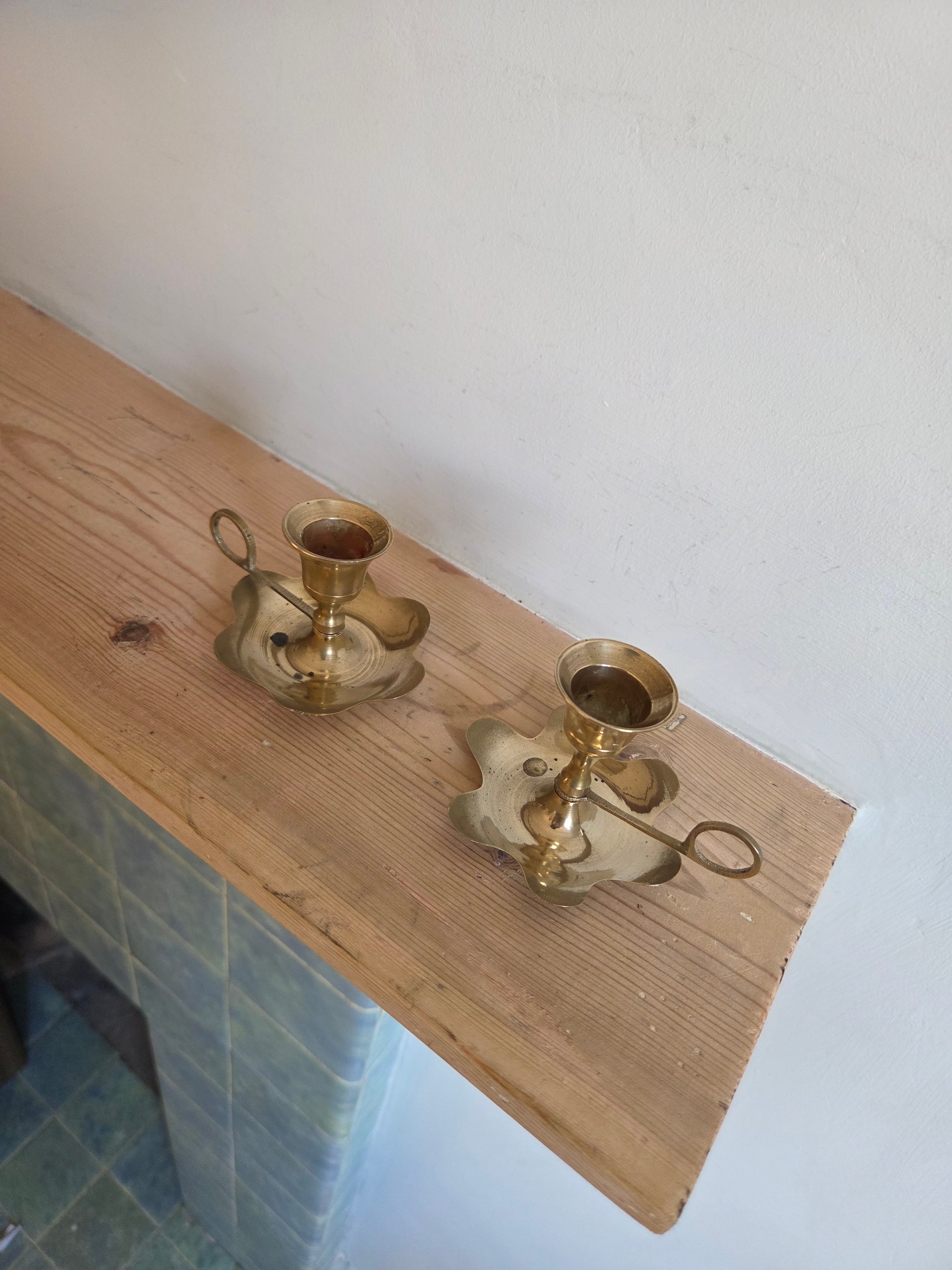 In good vintage condition with a wonderful patina. Please note these candlesticks are hand crafted and the flower shapes are not a perfect match - one is more wavey and one is more scallop shaped.