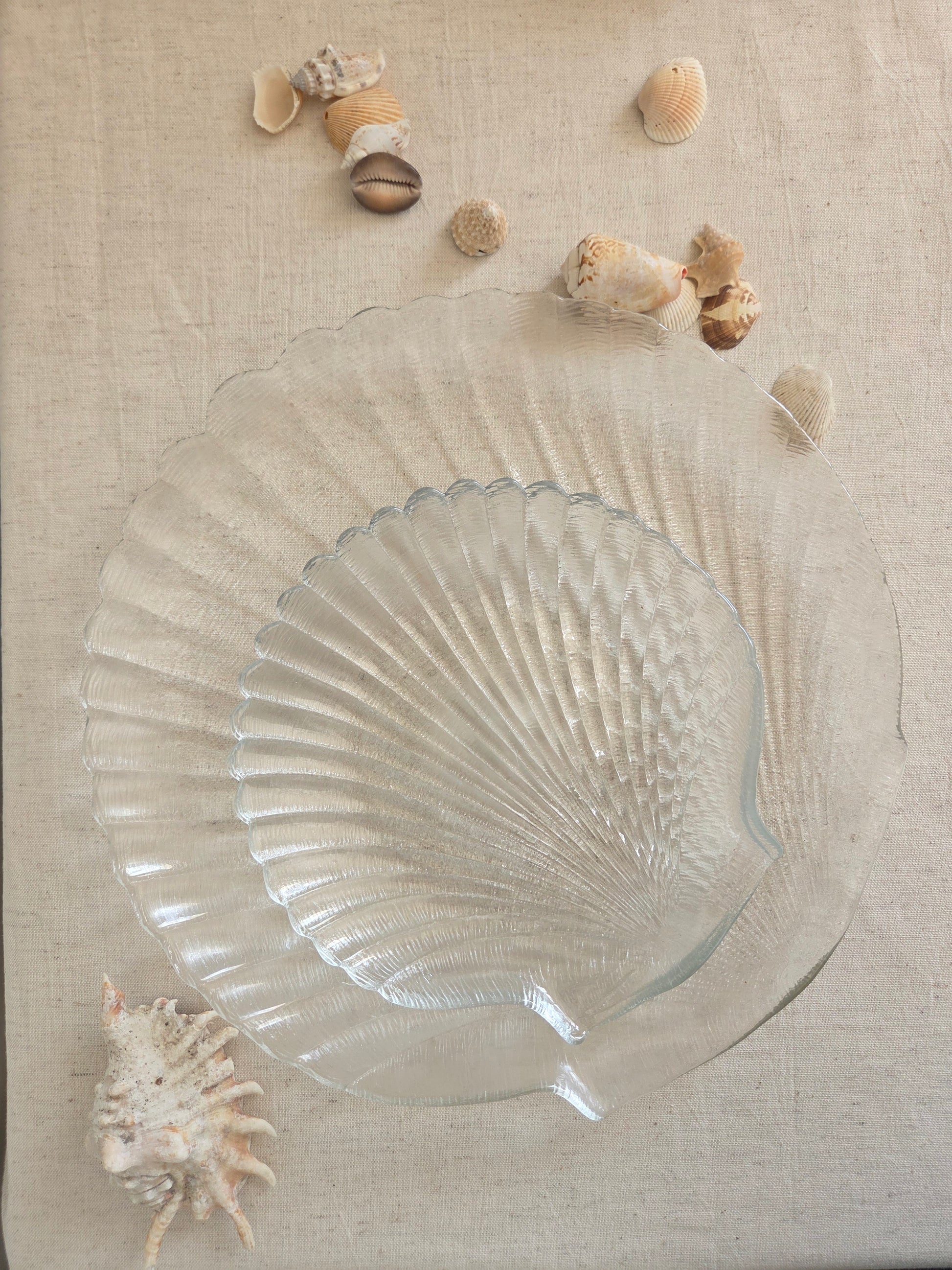 This glass shell plate is a lovely, delicate piece for serving or display. The shell shape is so classic. I also have a matching serving platter available.