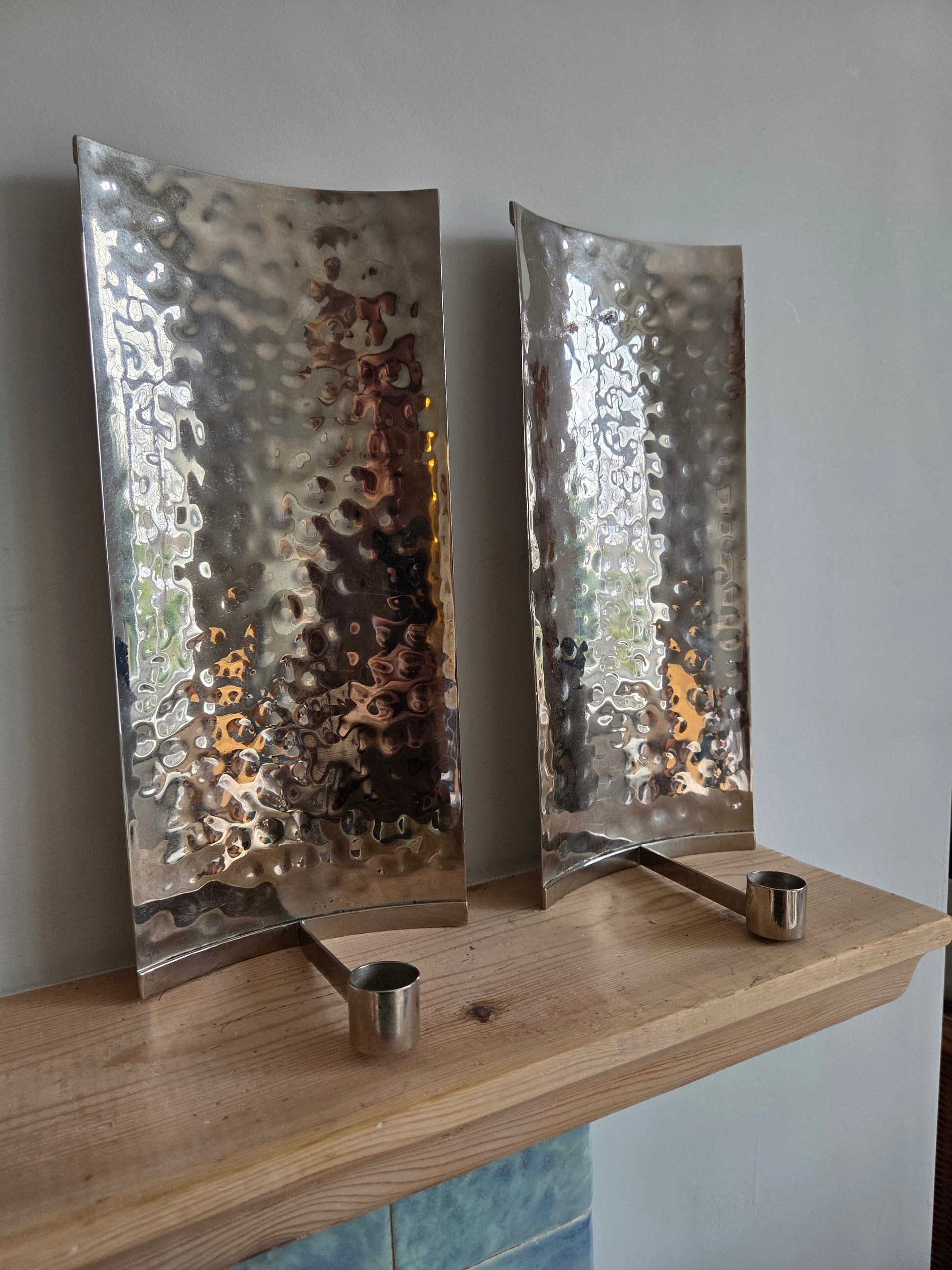 Hammered Silver Candle Sconces