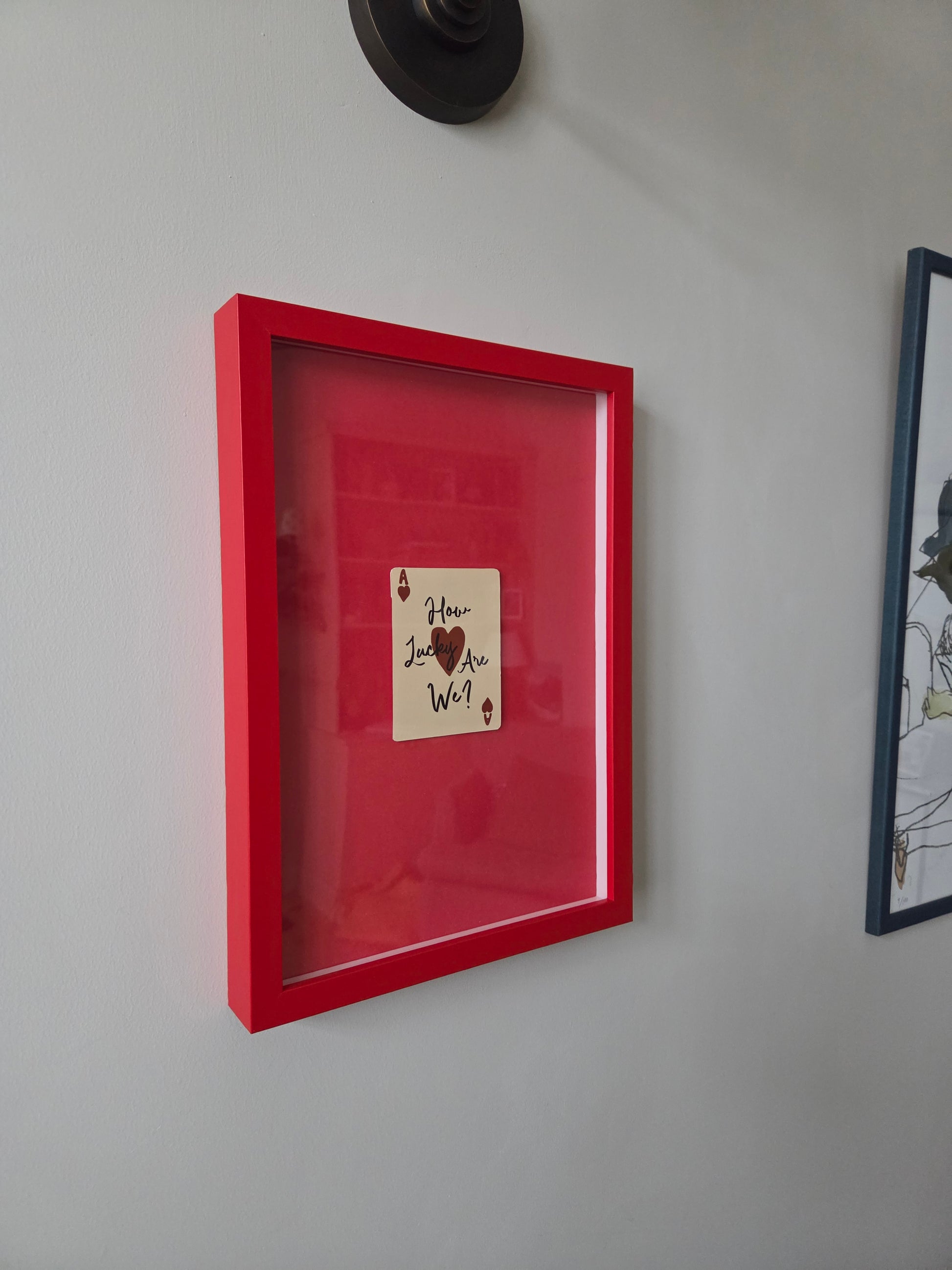 Lucy had already created this beautiful playing-card artwork, available on her website in A5-A1 sizes. But I couldn’t stop imagining it playing-card sized, tucked inside a bold little box frame.