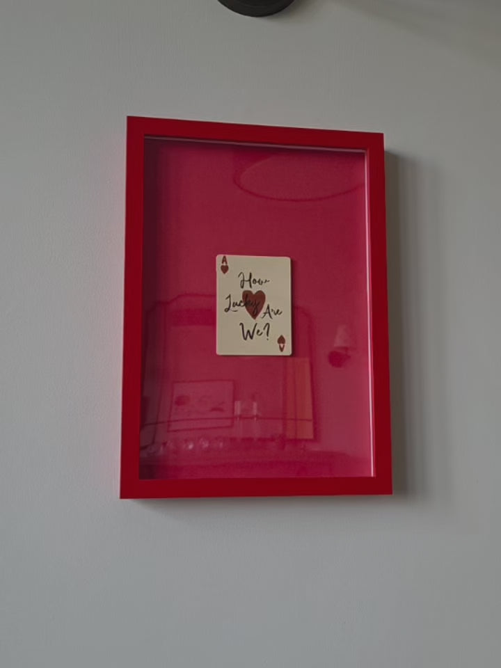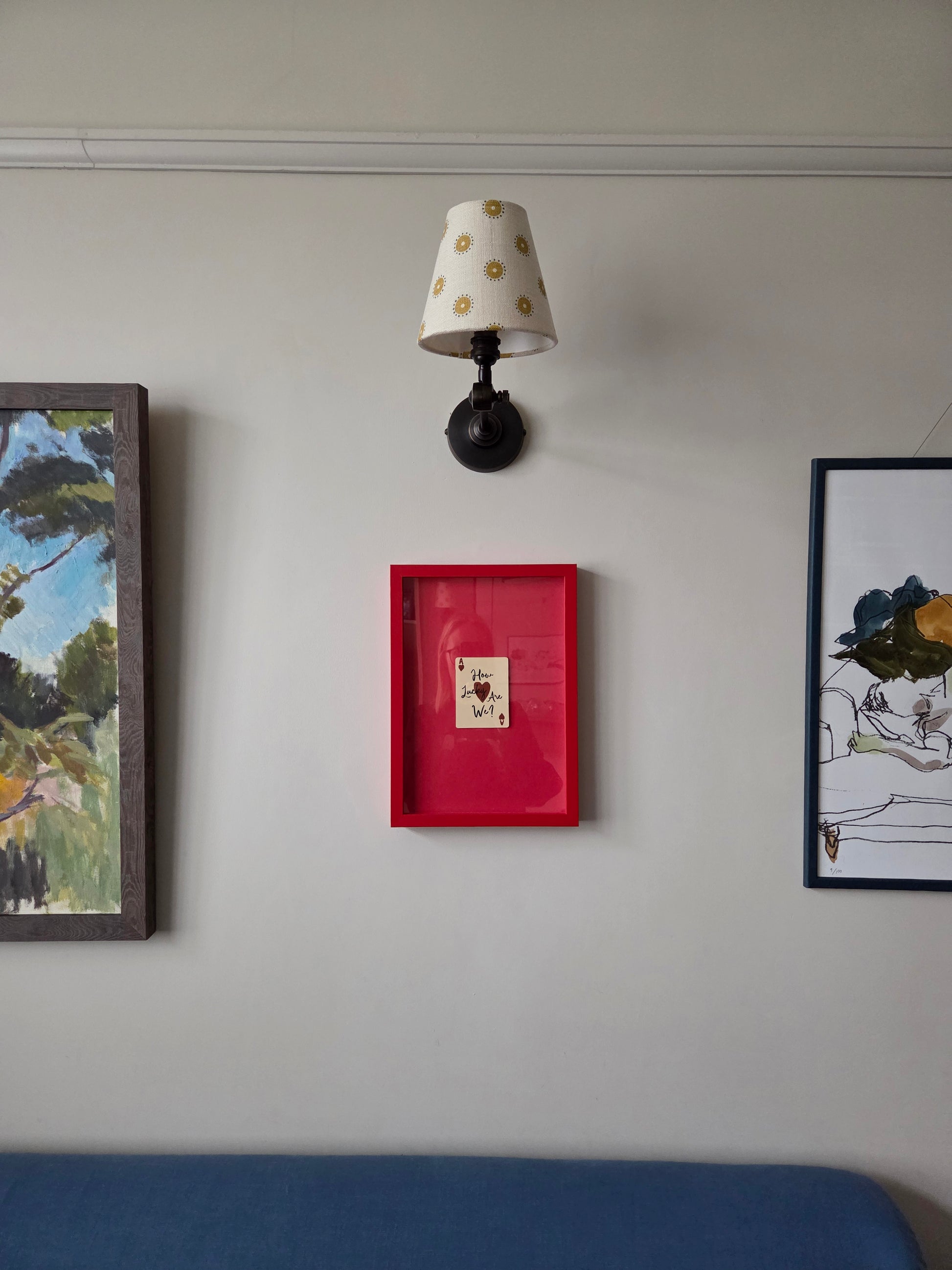 I used a red IKEA frame and a piece of red paper, but any box frame would work, you could even paint one to match, or go all-out and have it professionally framed for extra impact.