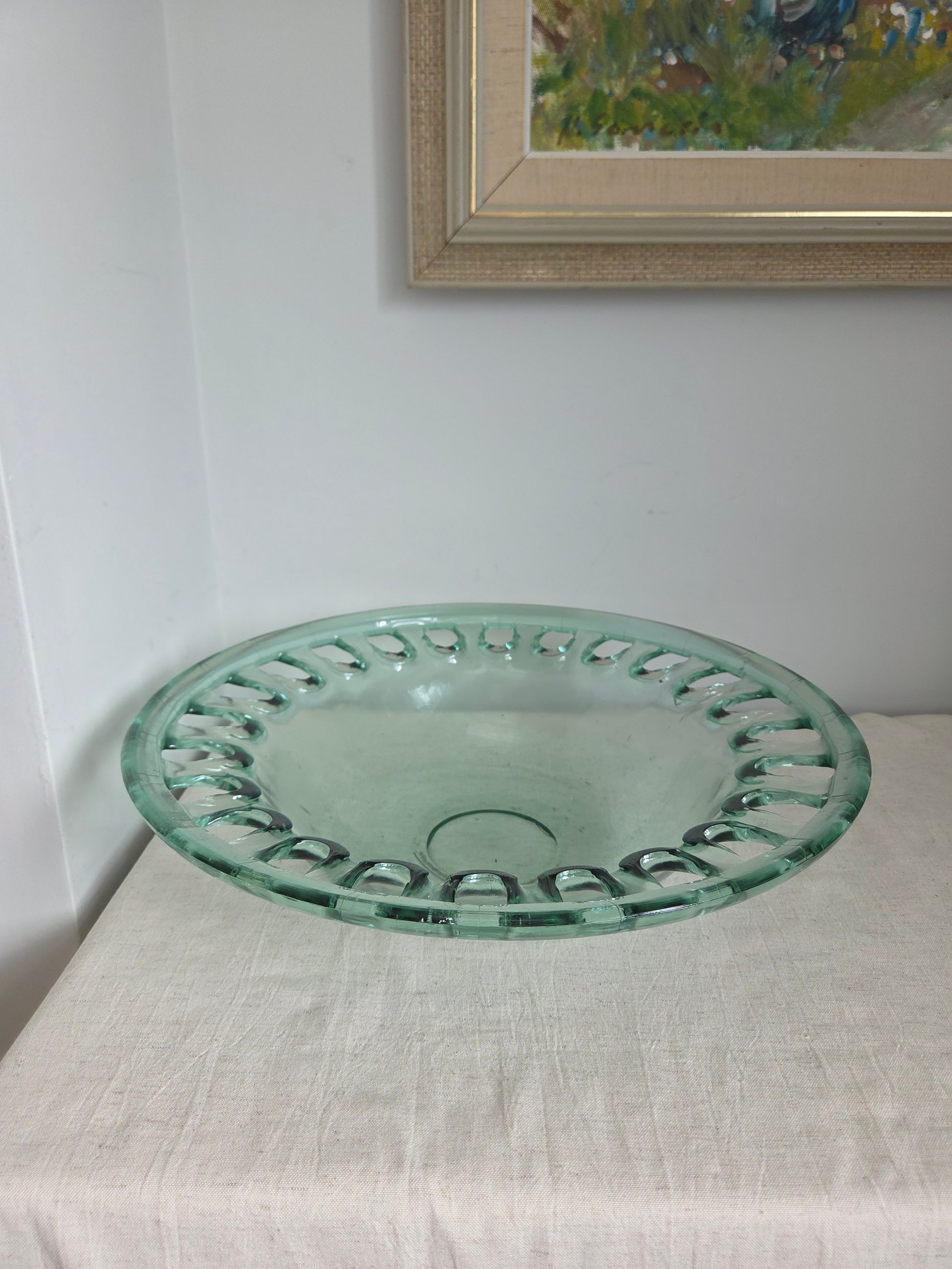 Large Vintage Glass Cut Out Bowl