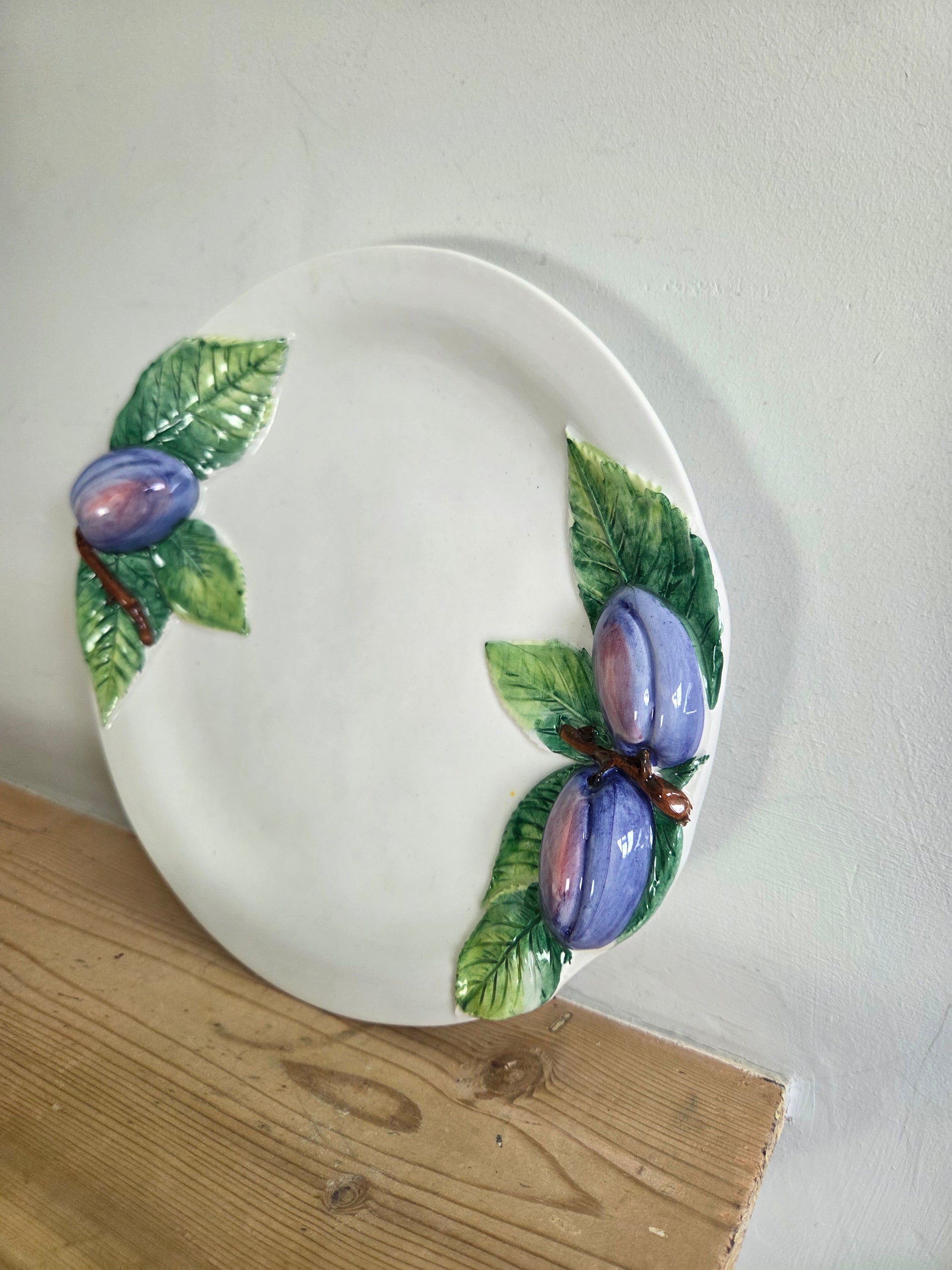This vintage Majolica plum plate has such beautiful, vibrant detail. It’s a stunning piece of decorative ceramic, perfect for a kitchen wall. Ideal for vintage Majolica fans.