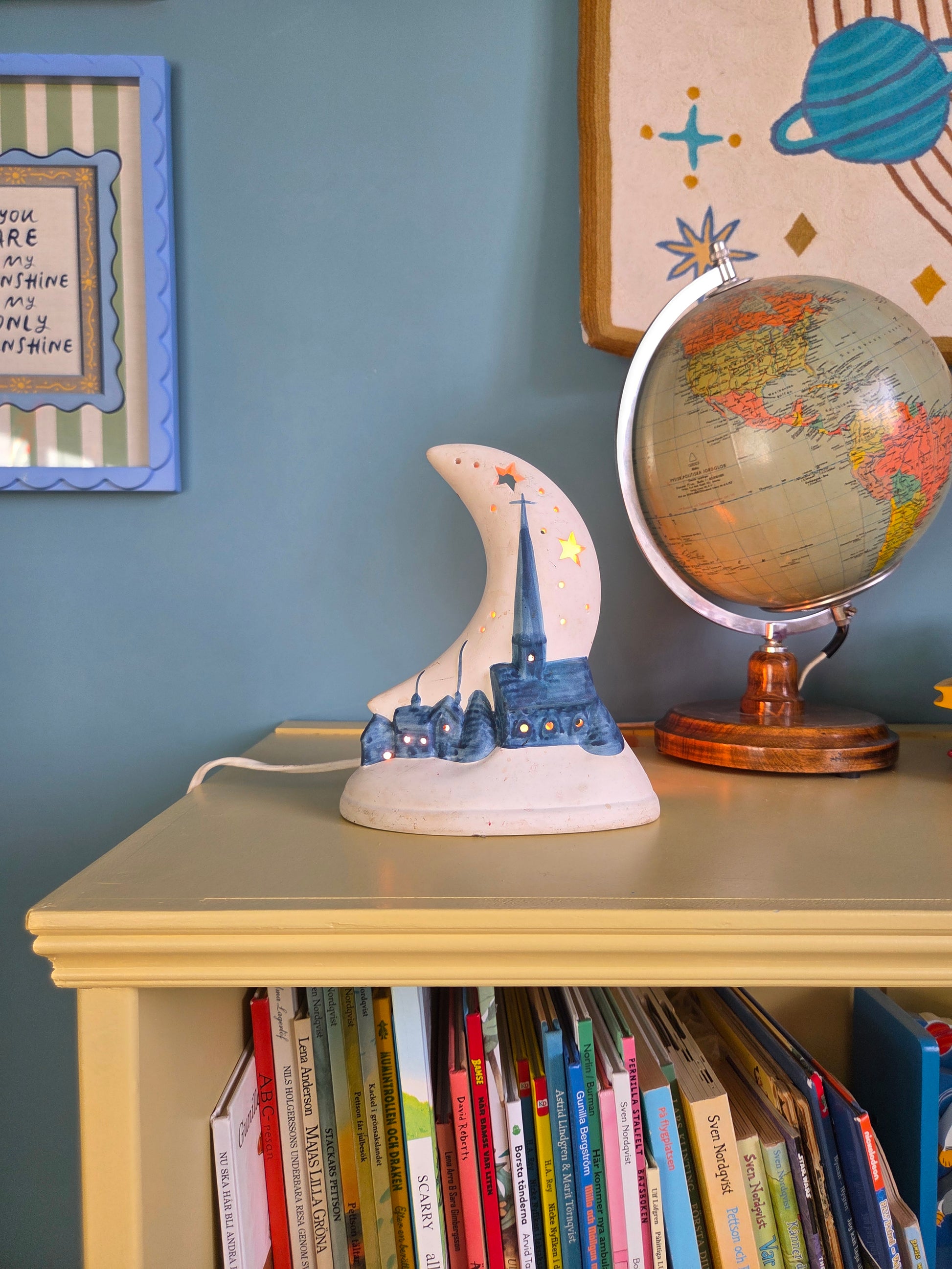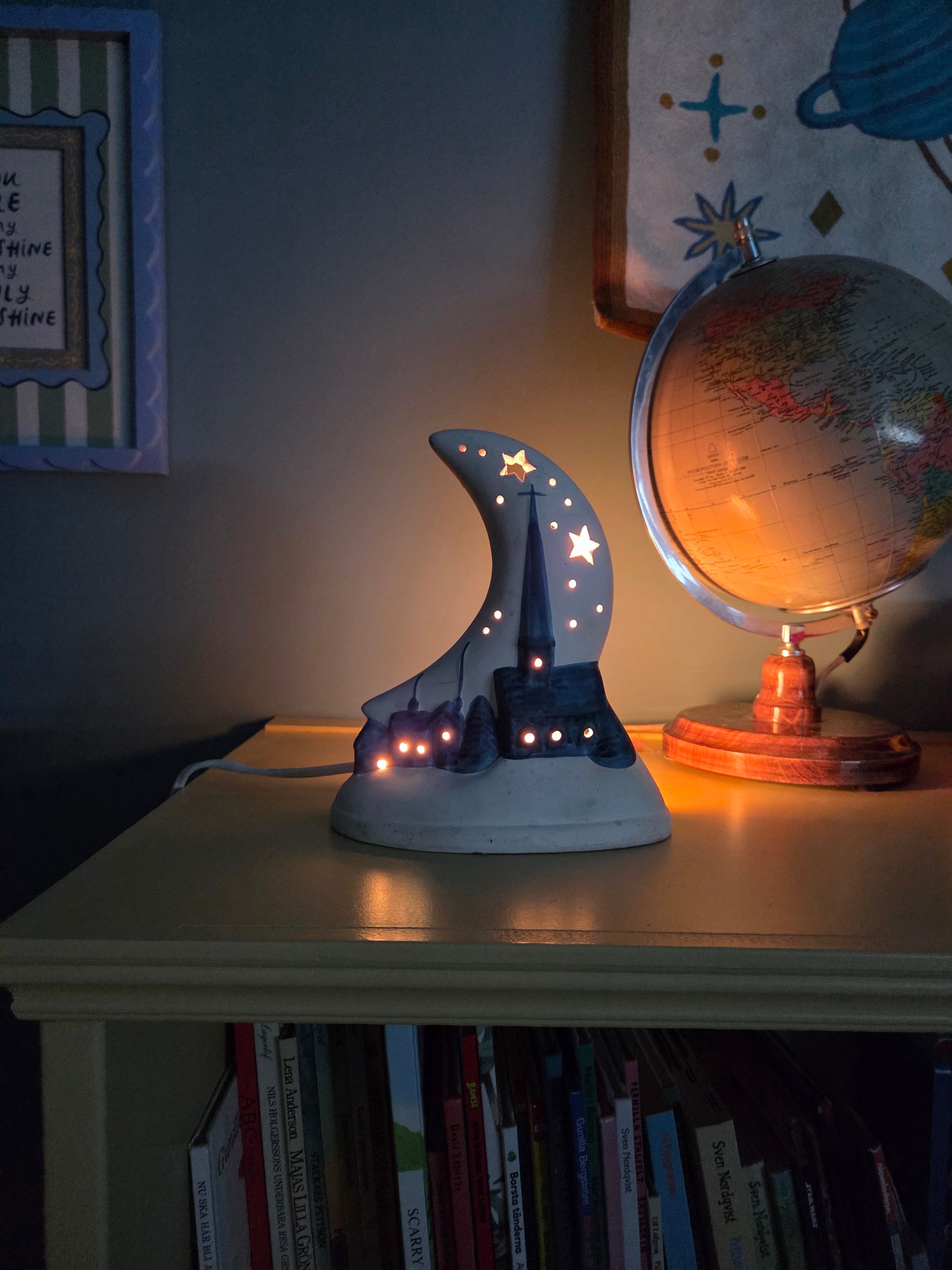 In good vintage condition. Some marks on the unglazed areas. Electrics in full working order but not PAT tested. This would have originally been a tea light holder but has had a bulb added.