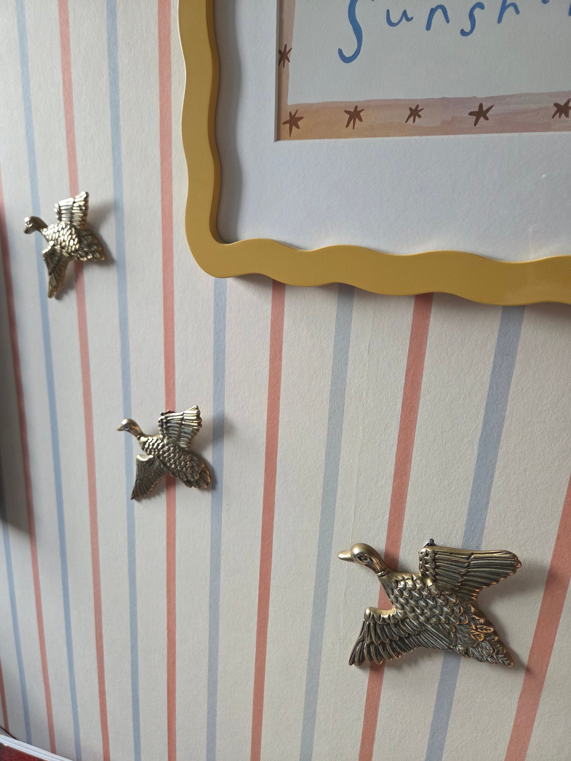 I think this set of three flying brass ducks is a total vintage classic. They look so cool soaring across a wall. Perfect for children's rooms or positioned above a door.
