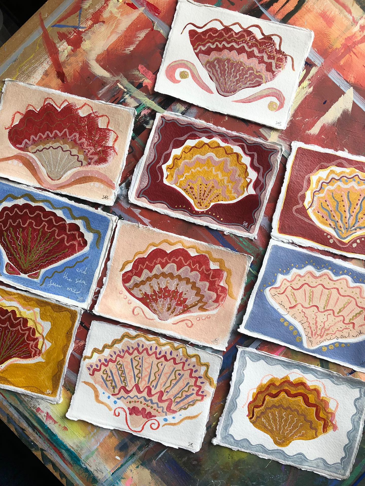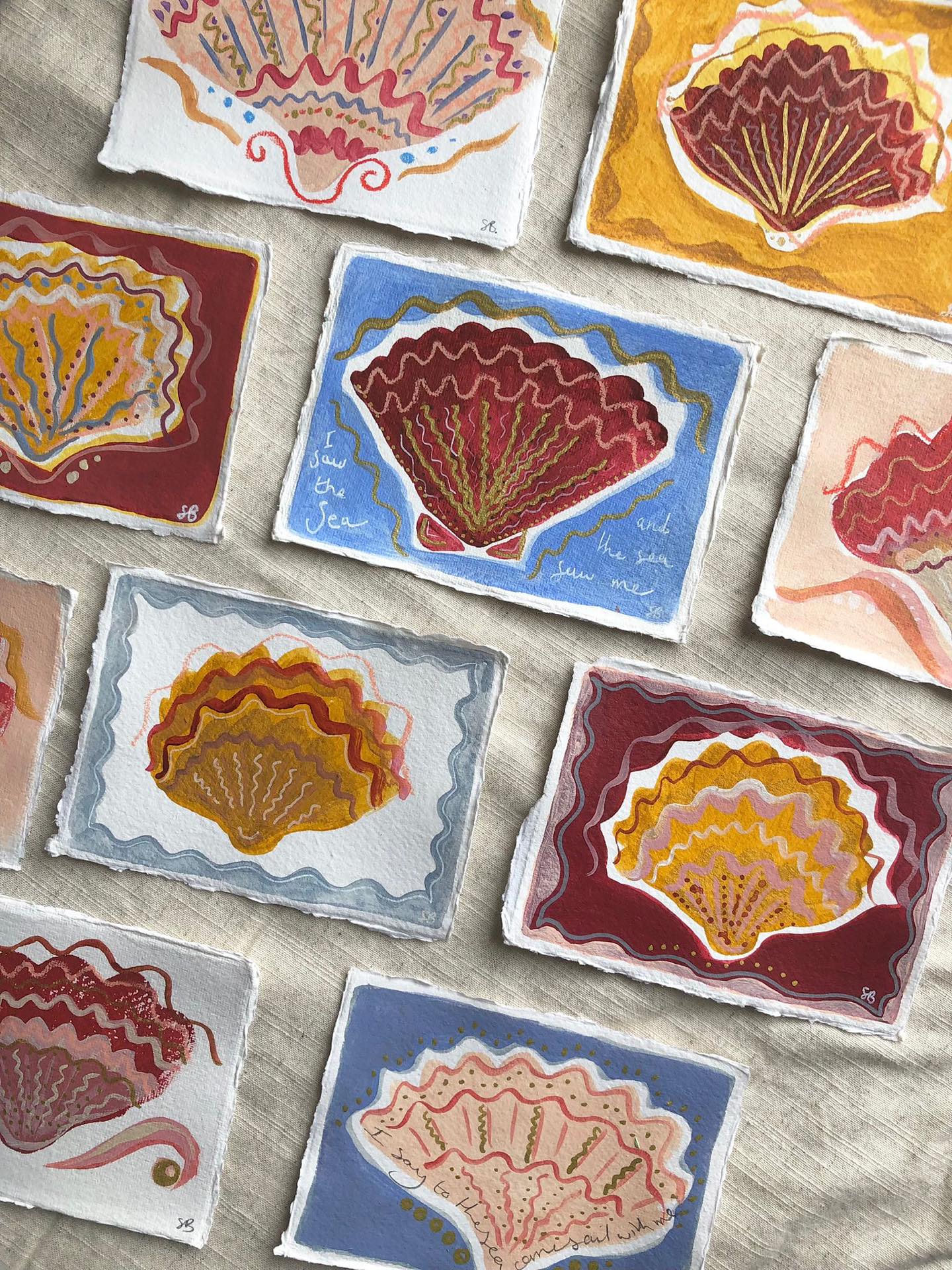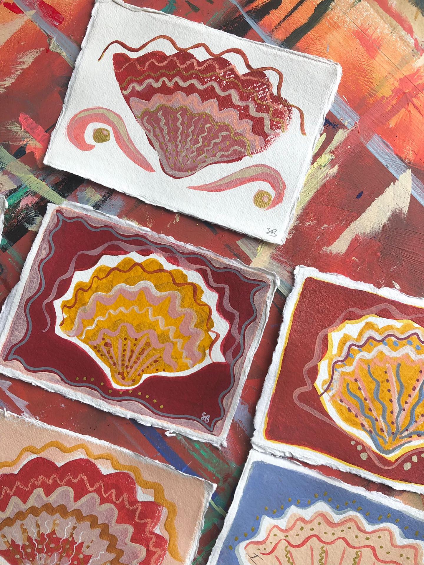 A beautiful original shell painting by artist Sian Beck. This piece is from the first ever Fynd Collaboration and was born from my love of Sian's art, having many of her works in my own home, mixed with my vintage homewares.