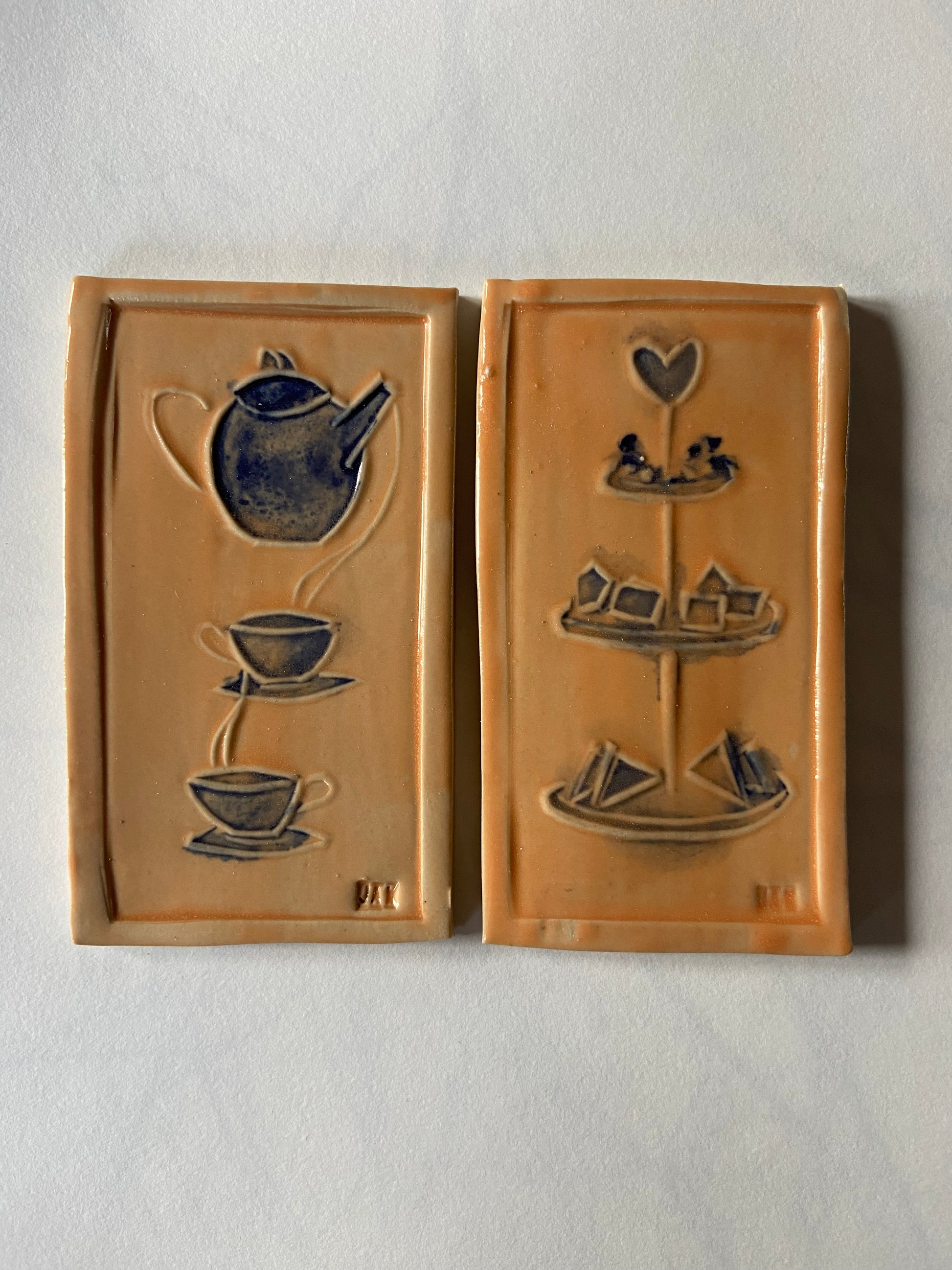 Jayne is a ceramic artist from Yorkshire, who is now living in Margate. She works in stoneware and porcelain. Her ideas are often generated by her interests, passions and obsessions. Jayne's tiles are uniquely made using a clay printing process using linocuts and then hand painted with oxides and underglazes, then glazed using a once-fired technique.
