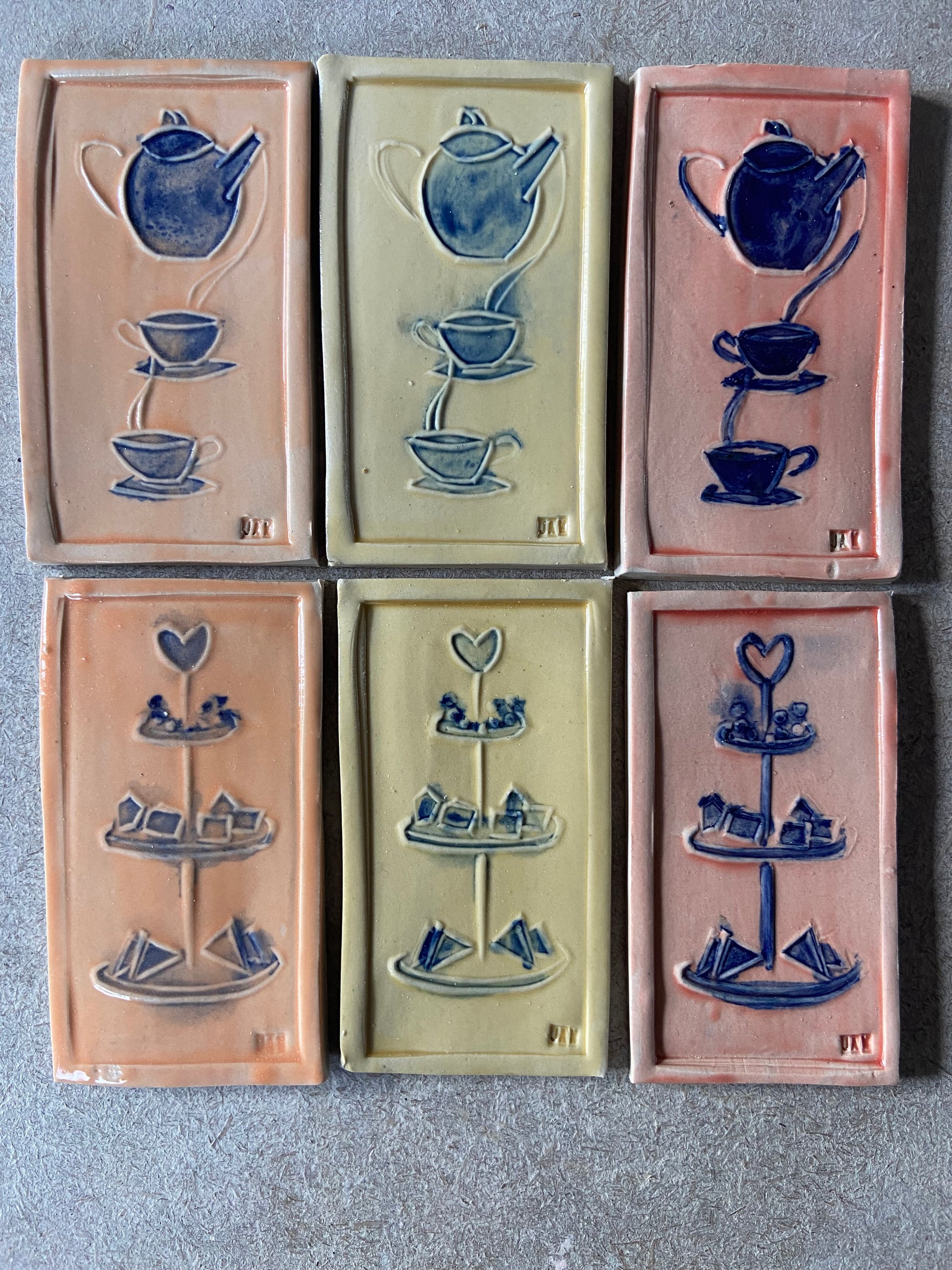 Jayne is a ceramic artist from Yorkshire, who is now living in Margate. She works in stoneware and porcelain. Her ideas are often generated by her interests, passions and obsessions. Jayne's tiles are uniquely made using a clay printing process using linocuts and then hand painted with oxides and underglazes, then glazed using a once-fired technique.