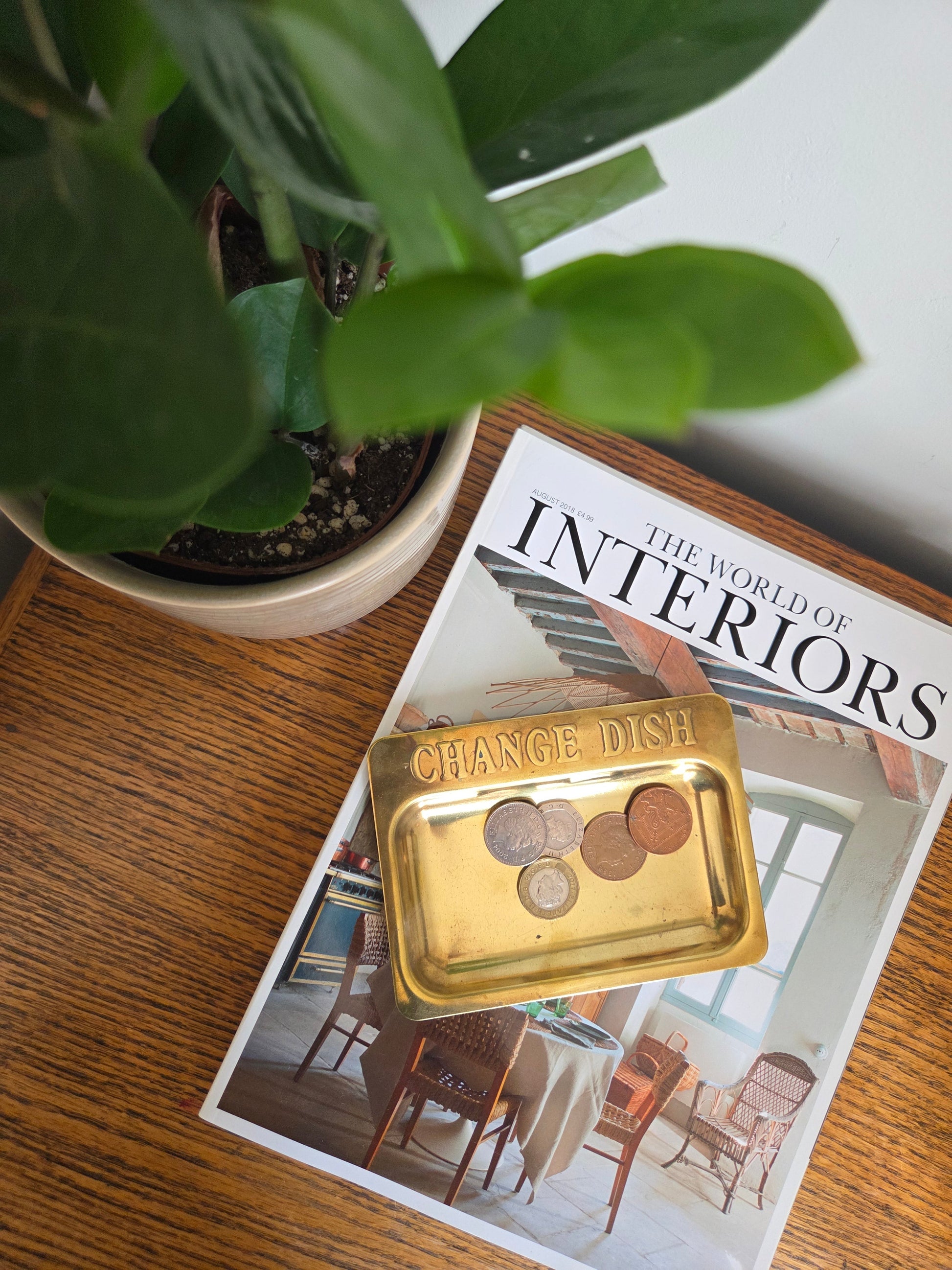 This vintage brass change dish is a simple and useful entryway piece - a perfect catch-all for keys and coins. The aged brass finish is beautiful and I love the way it reflects the light.