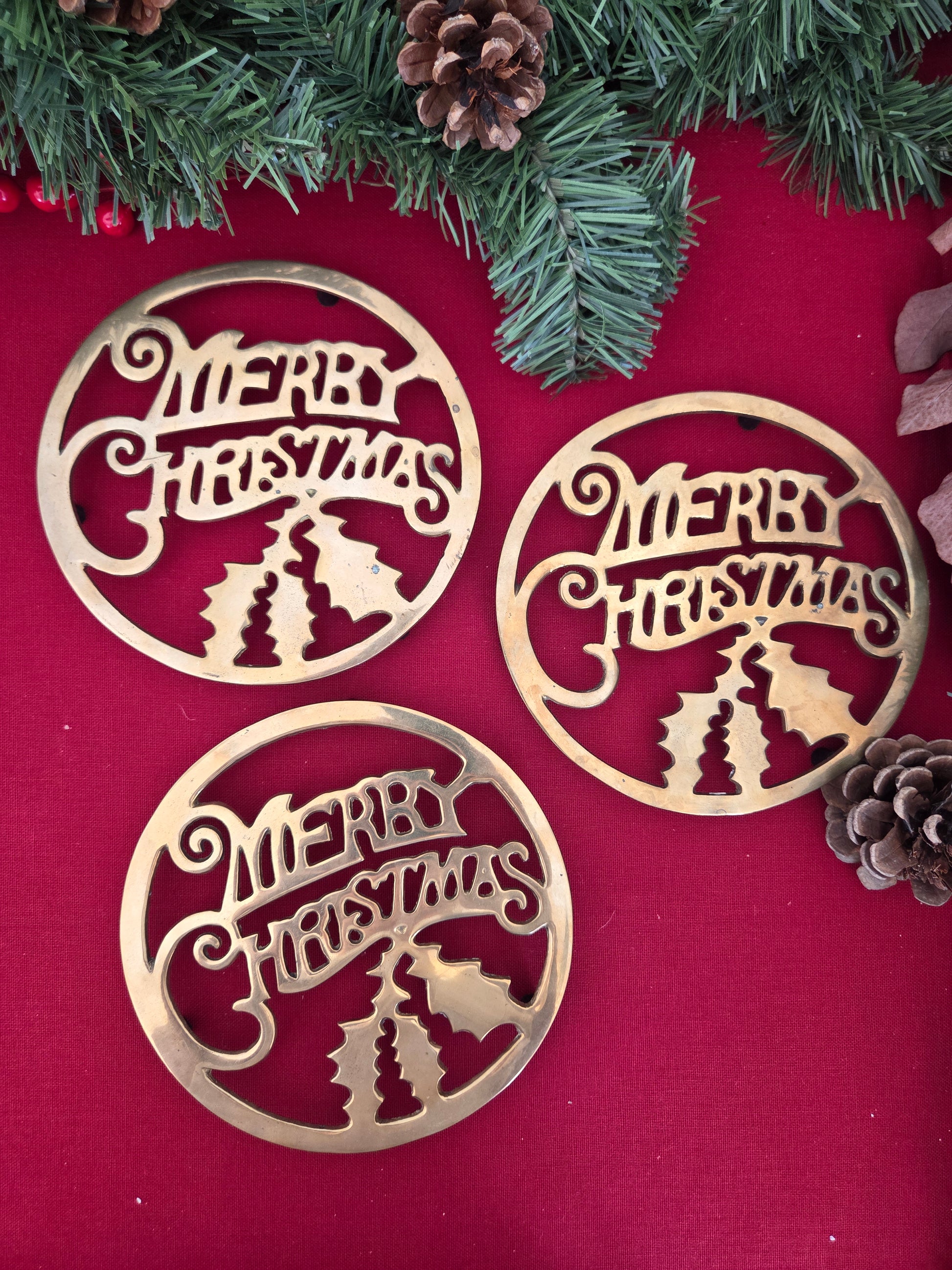Vintage Brass Christmas Trivet