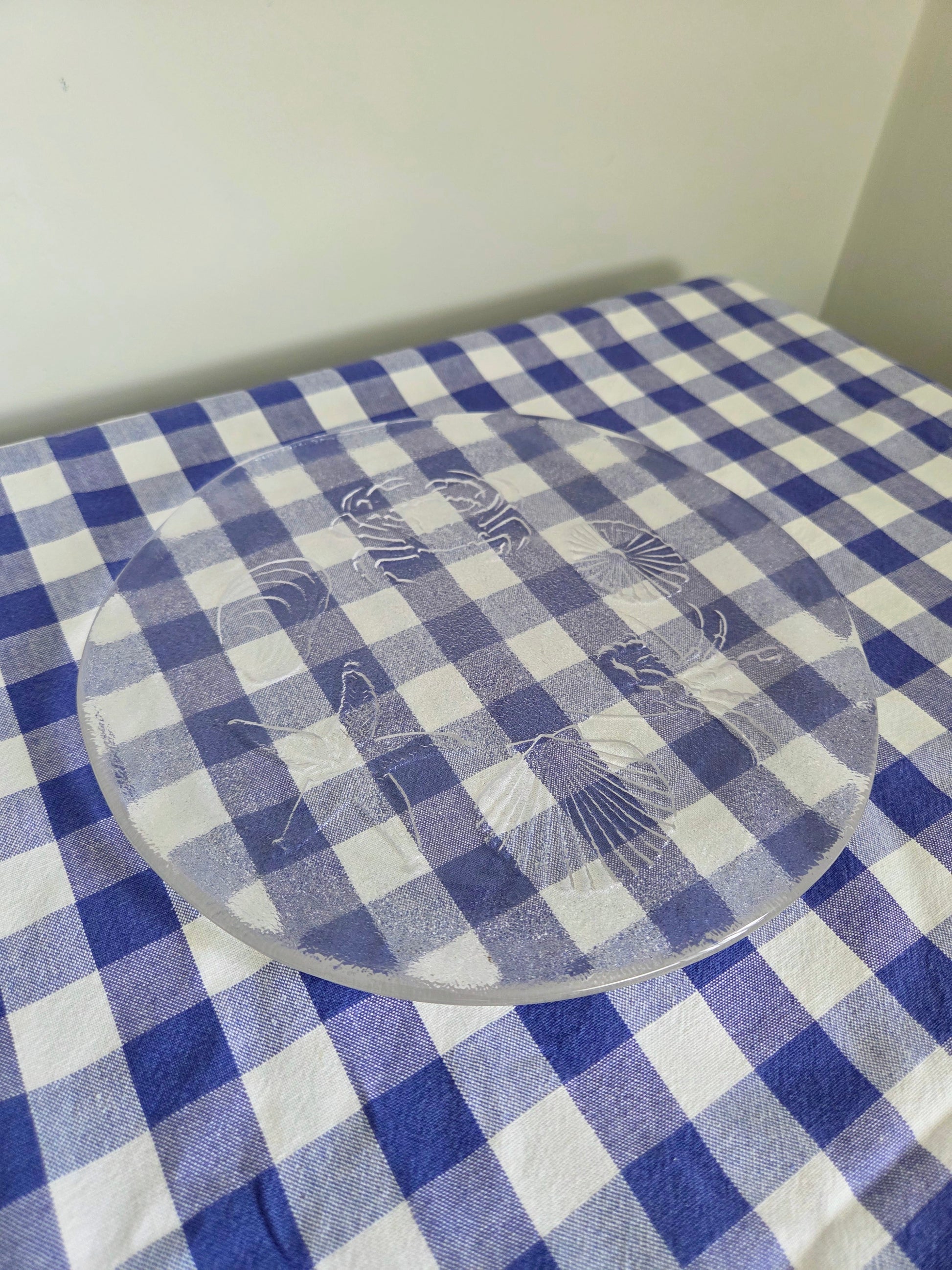 A fun sea themed glass plate, great for serving canapes. Two available.