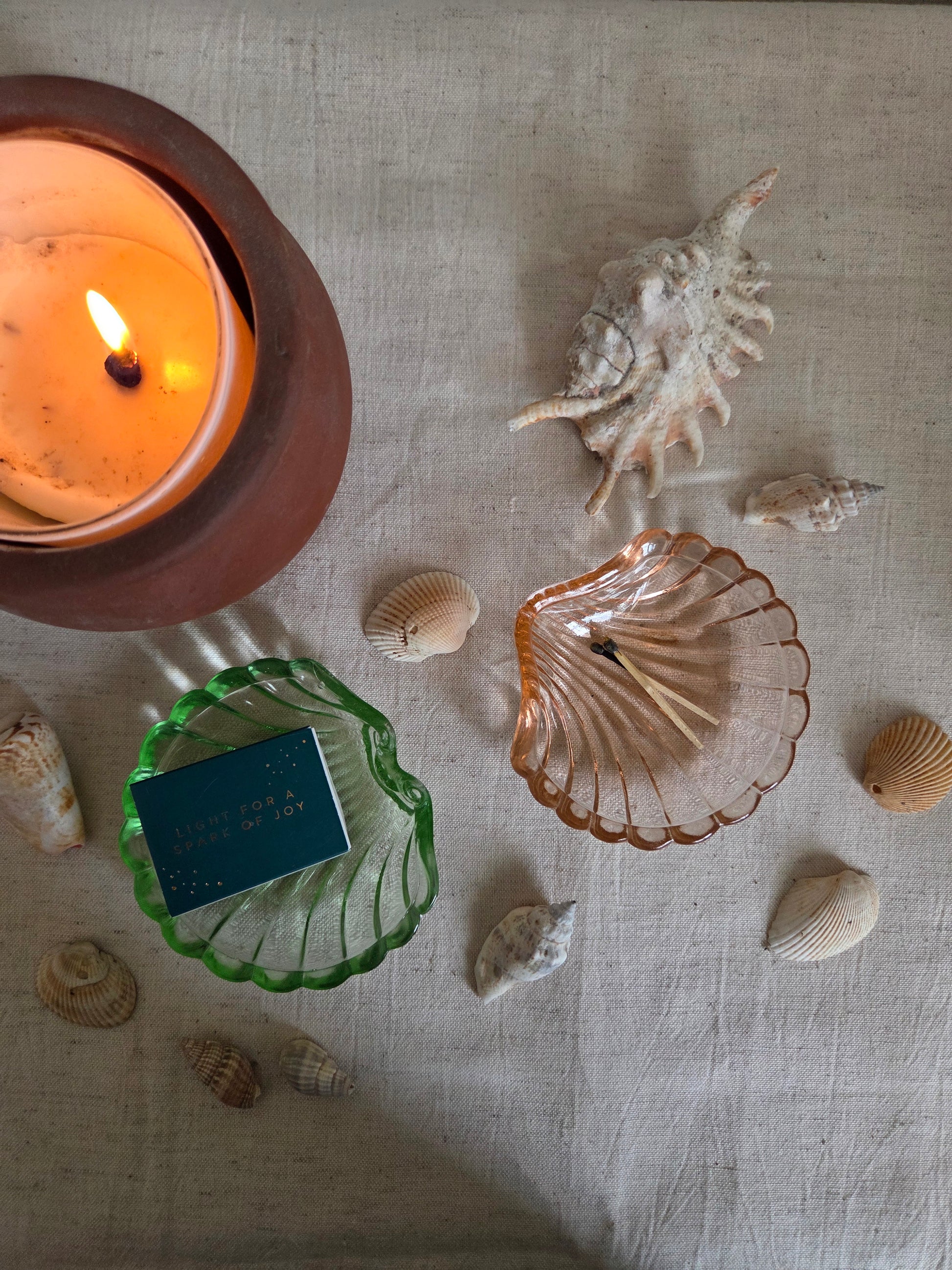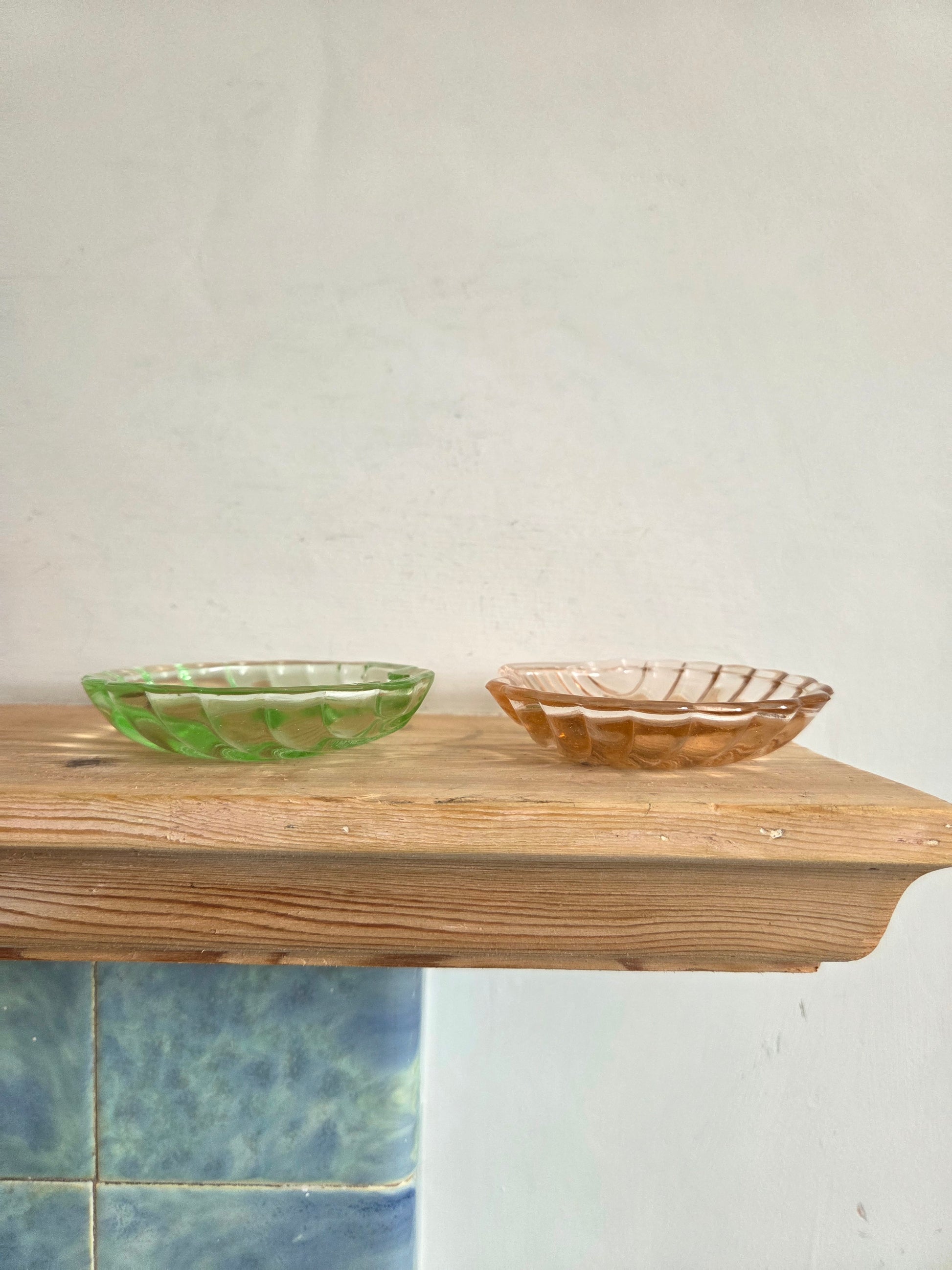 These vintage glass shell trinket bowls in pink and green are so colourful and fun. I think they look great as a pair but also work well individually. They are just the right size to hold rings next to a sink or to go on a dressing table.