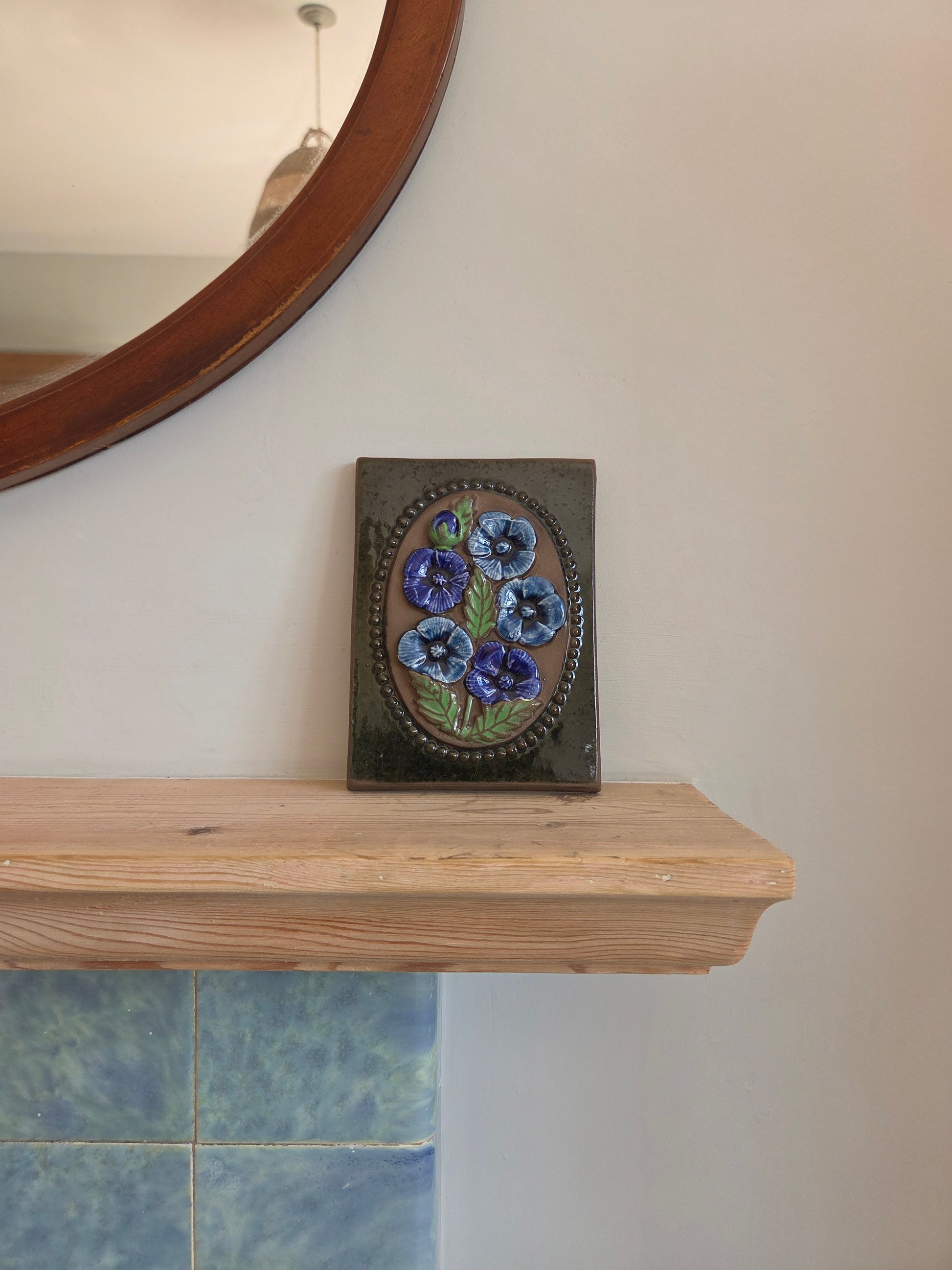 Vintage Swedish JIE Wall Tile with Blue Flowers 841