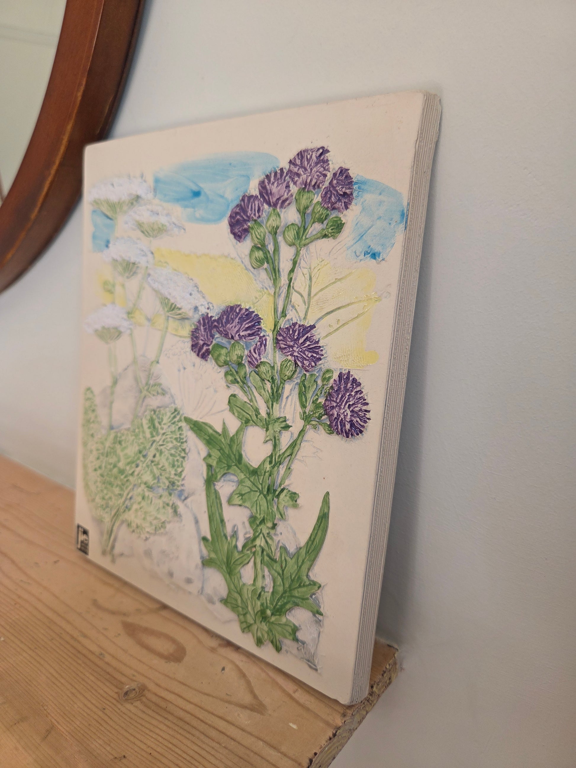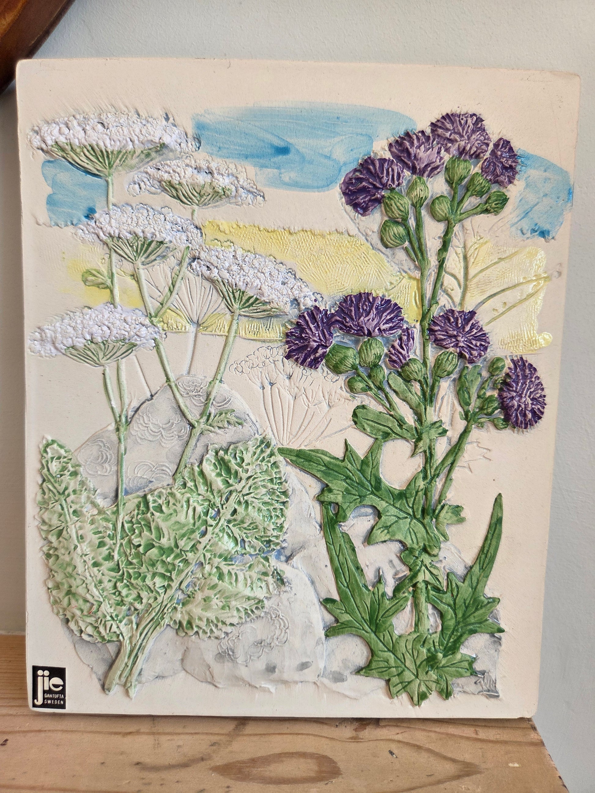 Vintage Swedish Jie Wall Tile with Flower Scene 865