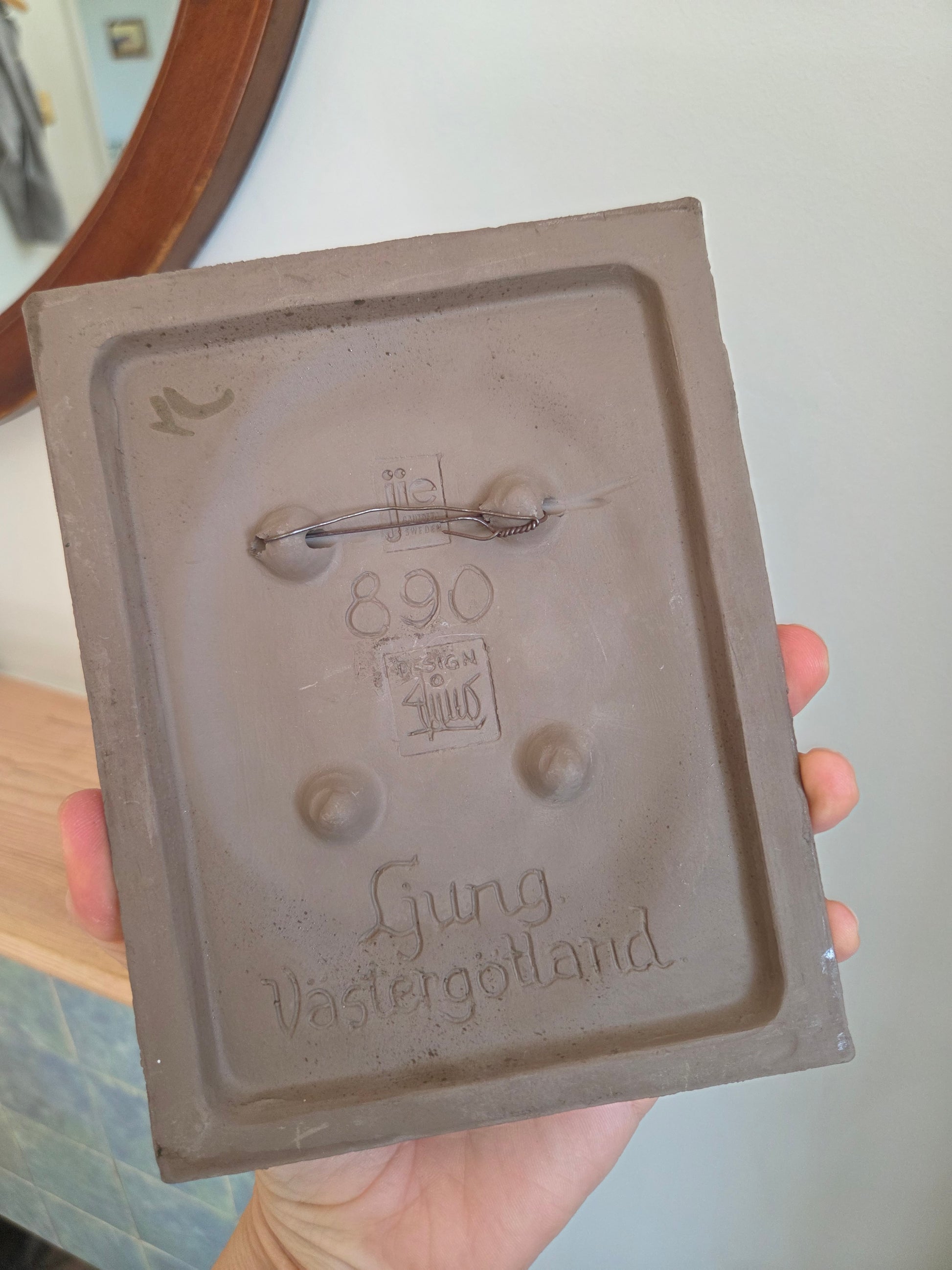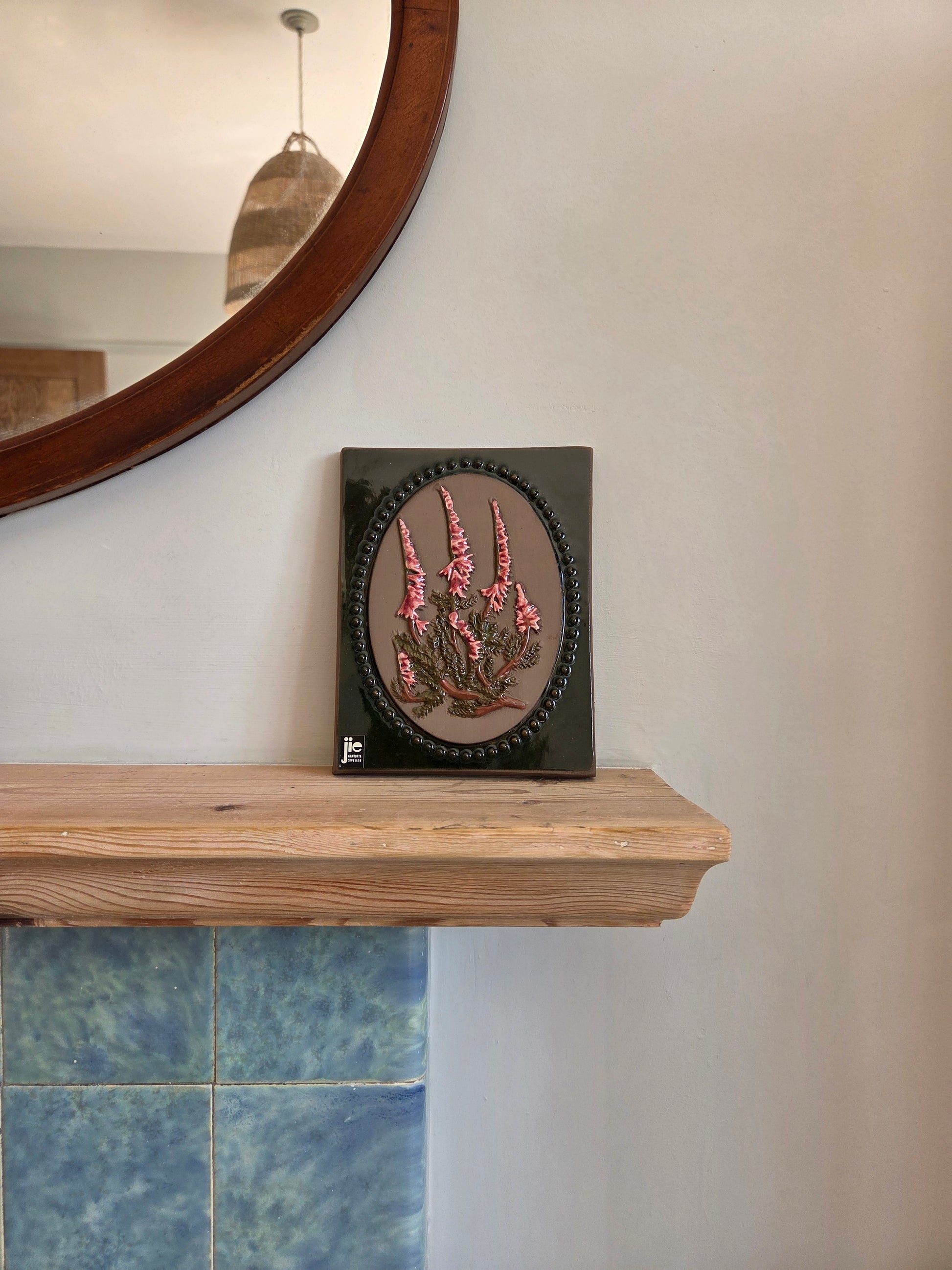 Vintage Swedish JIE Wall Tile with Pink Flowers 890