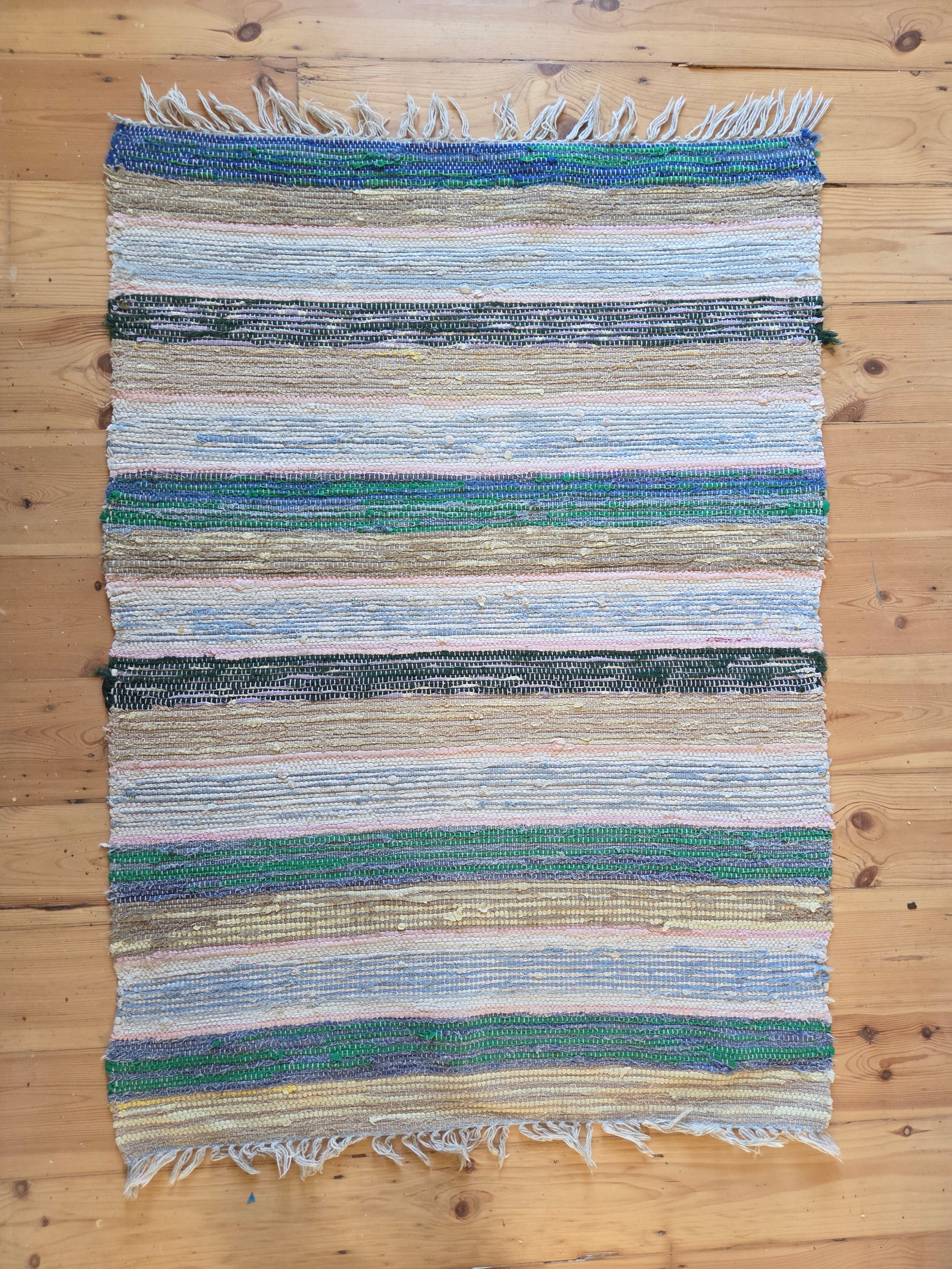 Vintage Swedish Rag Rug - Green, ochre and blue